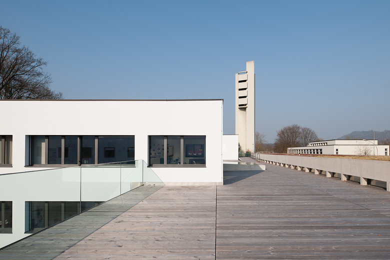 Ziel des Projekts war die Sanierung und Erweiterung des Schulwohnheims für behinderte Kinder, das aus den 1960er-Jahren stammt. Die drei Hauptgebäude wurden belassen, die Massnahmen beschränkten sich dort auf die Verbesserung der Lichtführung. Auch die schlichte, filigrane Architektur der Altbauten kommt wieder zur Geltung.