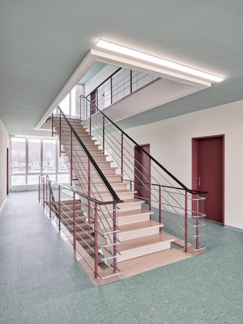 Diese nutzungsvariable Vorberücksichtigung hilft der Umnutzung bzw. dem Umbauprojekt, die bestehende Struktur optimal für ein neues Raumgefüge umzugestalten. Dem neuen Standort für den Verein «Lernwerk» ging eine Machbarkeitsstudie voraus, die das ideale Unterbringen der benötigten Arbeitsplätze und Kursräume für die Berufsintegration als auch für Verwaltung bestätigte. Das revitalisierte Verwaltungsgebäude soll das Entwicklungsgebiet in der Nähe des Bahnhofs zusätzlich aufwerten als ein zentraler Begegnungsort. Die Sanierung umfasst zusätzlich bauphysikalische Optimierungsmassnahmen und die Modernisierung der Haustechnik.