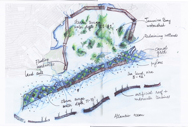 In the aftermath of Hurricane Sandy, MoMA PS1 and MoMA’s Department of Architecture and Design had a call for ideas in the form of a five minute film illustrating possible responses to the threat of rising sea levels in the Rockaways. In response, we generated 71%, a film made in collaboration with Horns + Tails Productions, illustrating a new paradigm for resilient coastal communities, consisting of culturally specific, multifaceted breakwater strategies, involving interventions in the landscape, infrastructure and architecture. (The title, 71%, refers to the percentage of the earth covered in water.) Our proposal was among 25 entries that were jury selected for exhibition at the VW Dome 2 in Rockaway Beach as part of EXPO1: NEW YORK in the spring of 2013.