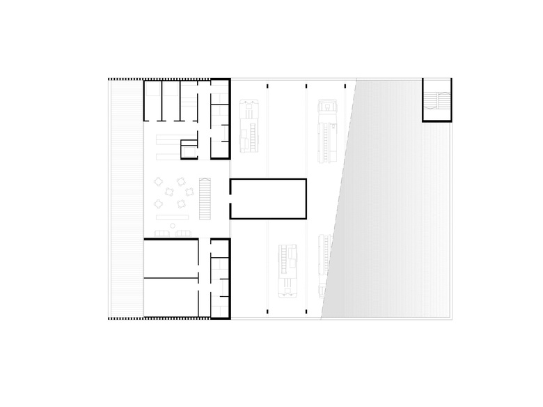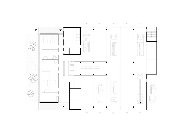 Alles unter einem Dach. Eine klare Organisation kann Leben retten! Im EG befinden sich die Büros. Von den Ruhebereichen im 1. OG und den Aufenthaltsräumen mit der Terrasse im 2. OG gelangt man über zwei Schleusen auf kürzestem Weg zu der Halle mit den Einsatzfahrzeugen.