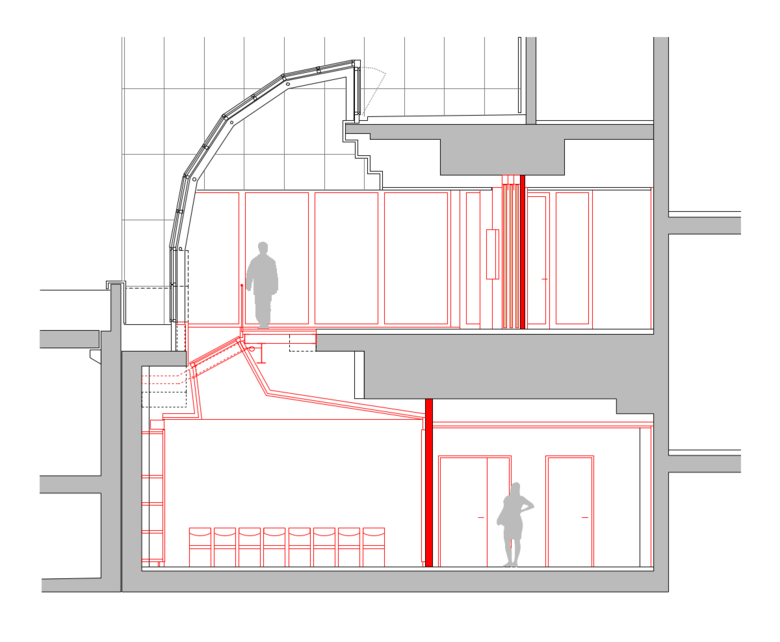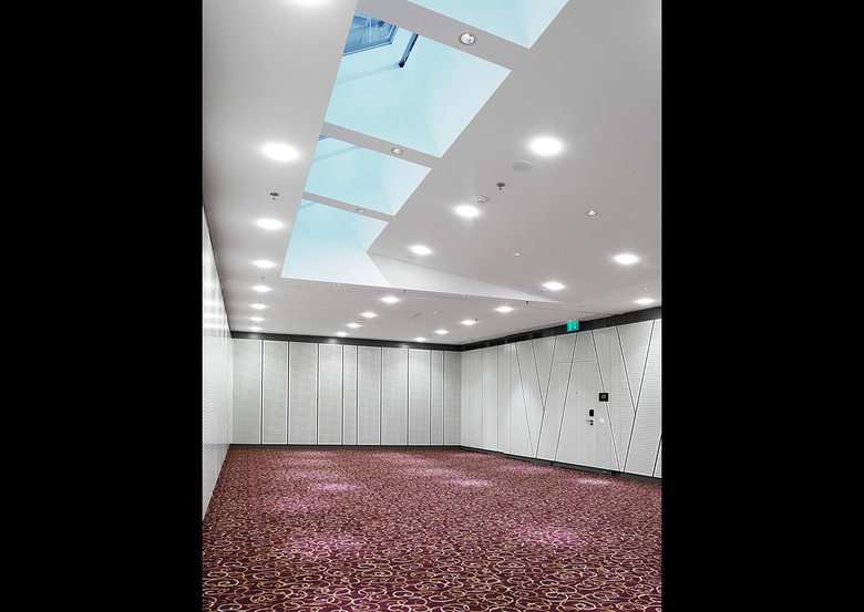 Im Rahmen der Vorstudien kam auf Wunsch des Hotelbetreibers der Einbau eines zusätzlichen Konferenzraumes hinzu, anstelle einer ungenutzten, zweistöckigen Eingangshalle. Die Herausforderung war, den Raum so zu gestalten, dass dessen fehlender Bezug zur Aussenwelt nicht störend wahrgenommen wird.