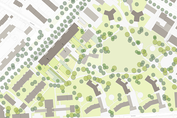 „Die Bebauung geht von dem Grundgedanken aus, die Baumassen rund um die Freifläche hochzuführen, um so eine möglichst grosse Anzahl von Wohnungen mit der zukünftigen Parkanlage in unmittelbare Verbindung zu bringen.“