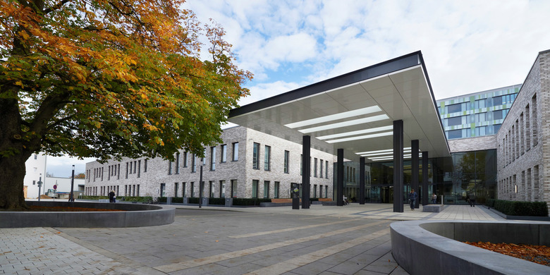 Erschlossen wird das Gesamtgelände durch die neu geschaffene Klinikallee, hier erreicht der Besucher den zentral gelegenen Haupteingang am neuen Klinikplatz. Dieser ist geprägt von dem historischen Altbau und zwei 150 Jahre alten Kastanienbäumen. Zentrum des Klinikums ist die lichtdurchflutete Eingangshalle. Im Inneren wird das Gebäude über eine Magistrale erschlossen, an der sämtliche Wartebereiche, Leitstellen und Erschließungen in die oberen Stockwerke liegen.