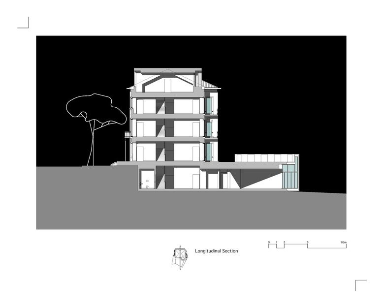 We chose to preserve the existing house and its relations to the land, not so much because of its architectonical traits, which are modest, but because it obeys a characteristic typology of the Estoril area, whose specimens are being demolished and replaced by big apartment or office buildings which fill the totality of their lots, not leaving any room for garden areas and blocking visual interaction.
