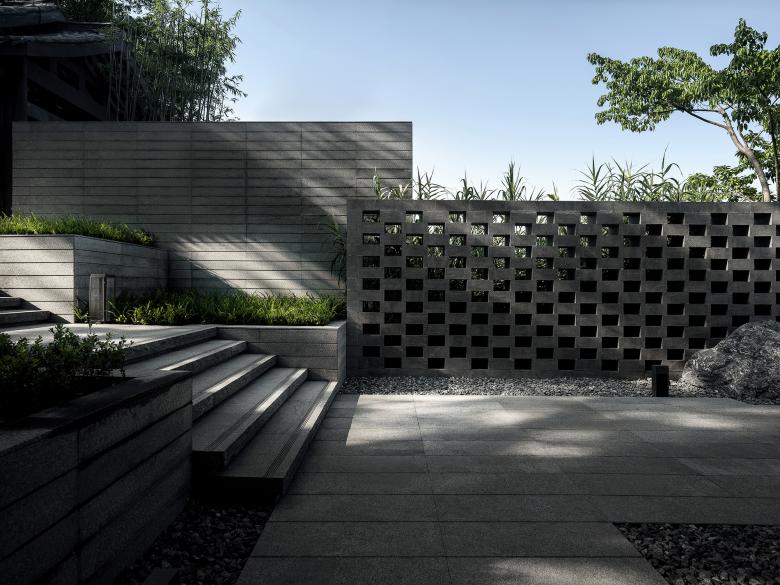The transitional space is a solution to the elevation difference of the terrain, which seamlessly connects the indoor space with the naturally beautiful surroundings, creating a serene and peaceful atmosphere.
