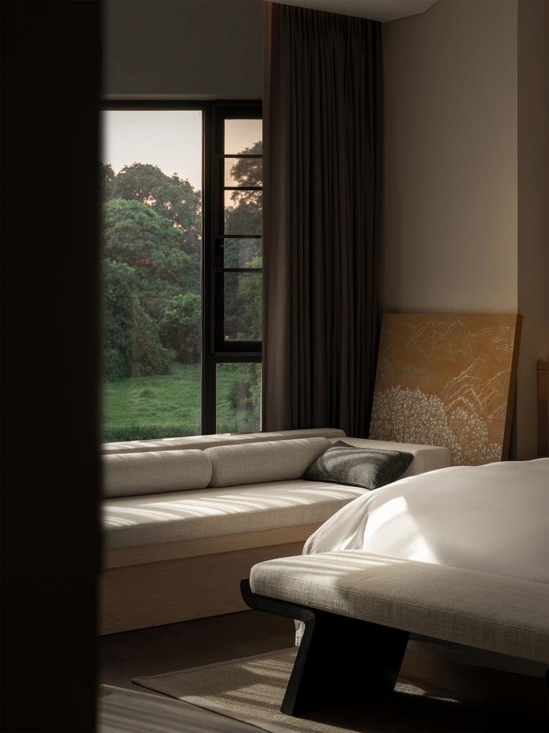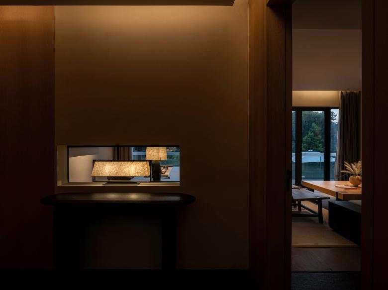 With a contemporary Eastern flair, every corner of this space is infused with a natural essence. The simplicity and unpretentiousness of the surroundings allow guests to immerse themselves, letting go of worldly constraints and embracing their true selves. The harmonious blend of the unified palette and the play of light creates an atmosphere of purity and tranquility. Based on the changing casts of light and the landscape of the lake, the best indoor viewing frame was carefully crafted, so that every view becomes a metaphor and surprise waiting to be discovered.