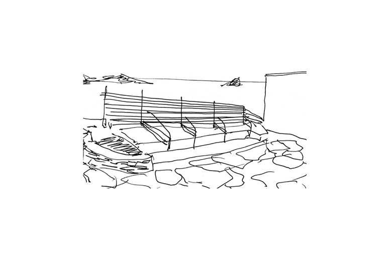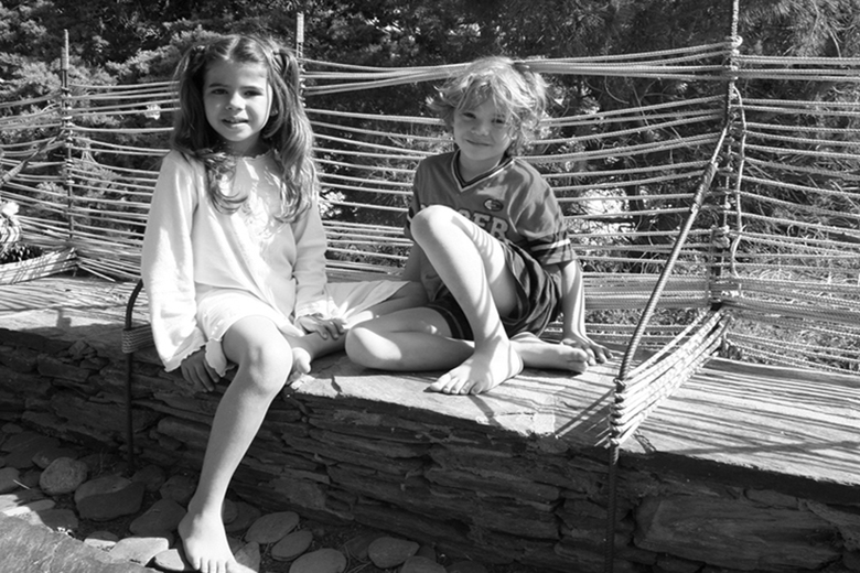 Since 1996 we have been doing in Cadaqués an installation called “Passanelles” based on throwing, sliding on the water, the stones of the beach. After six years of consecutive facilities, in 2002 was optimized the signaling system and, therefore, concluded its function 600 meters of rope, 11 rebar, 11 concrete blocks and 88 buoys. On the weekend “Passanelles 2001” (28-29 April) we decided to organize for the following Sunday a party for children aged 0 to 4 years in a small apartment on the outskirts of town ... on the terrace there was not railing! Because of economy of time and resources it was decided to reuse the material removed on Sunday 29 and move on a railing over the next two days ... many meters of rope (11 lengths of 60m), 11 iron bars, stones of the beach, dry logs of bougainvillea, mastic for gather and... not so much time. The small low wall-bench, which until then had used like railing, it is essential to rigidize the tightened rope ... bend corrugated irons to handle the anchorage of an old pillar, to built it into the cracks of the slate wall pre-existing, ri¬gidizing the embedment with wedge dry logs of bougainvillea and mastic for gather, and other dig into compacted ground with stones from the beach ... starting from here, the railing is weaved and the rope is manually tightened in a continuous process of movement, transformations ... and remains. The party could be made and eventually, the rail that had been designed for the occasion is over consolidated.