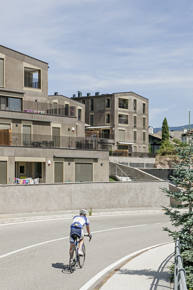 Die für Südtirol spezifische kompakte Dorfstruktur wurde von den Architekten für die Wohnanlage aufgegriffen. Die Gebäude schmiegen sich fließend an die Struktur des Ortes mit unterschiedlich gelagerten Niveaus an und vervollständigen so das Gesamtbild der Siedlung, die sich nun aus alten und neuen Elementen zusammensetzt. Die bestehende Terrassierung des Baugrundes wurde für die Gestaltung von privaten Terrassen und Gärten genutzt.