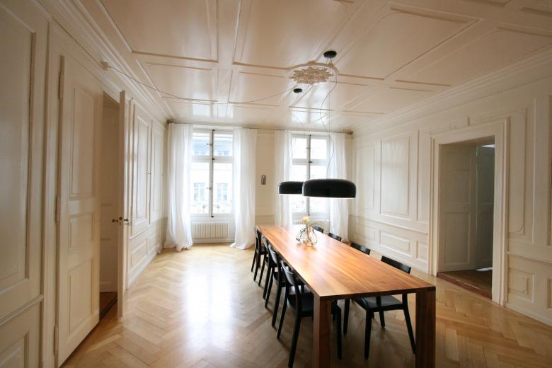 Neben partieller Rekonstruktionen und aufwendiger Restaurationen, welche den Charme des historischen Gebäudes neu aufleben liess, wurden moderne Elemente (Küchen, Bäder u.a.m.) in reduzierten Formensprache daneben gestellt.