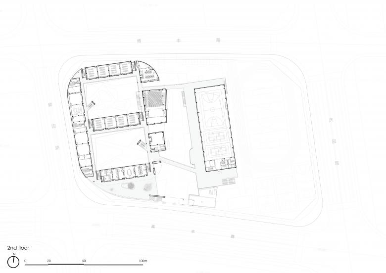 Such a circulation system, independent from the egress stairs and routes, effectively defines the campus spatial structure as it extends from ground level to the roof level. It played a critical role in the form generating process. As a result, the campus complex appears more solid as a whole on the external sides, but more fragmented, penetrated, and interlocked along the internal pathways and stairs.
