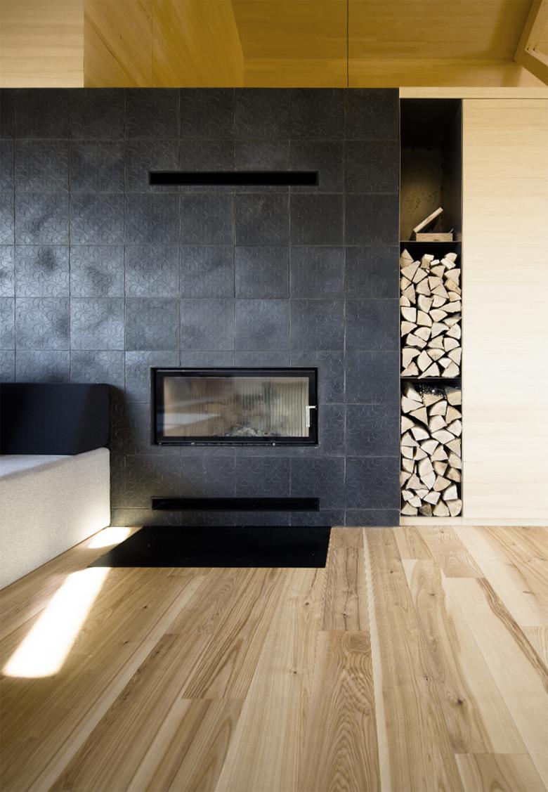 Die Fachwerkskonstruktion in der Wohnküche ermöglicht eine großzügige Raumhöhe und ein offenes Raumgefühl. An die Wohnküche schließt ebenerdig die Loggia an, diese schafft eine geschützte Verbindung in die Natur – wegorientiert von der Siedlung.