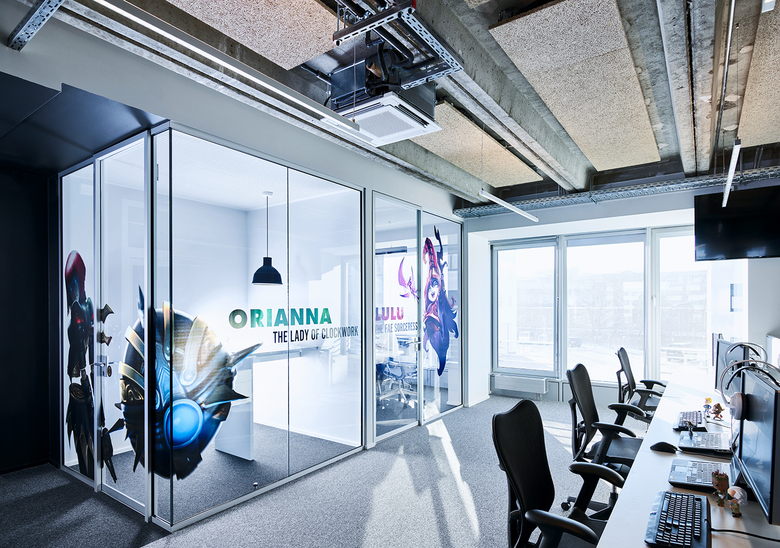Für den neuen Deutschlandstandort eines amerikanischen Videospiel- und eSport-Unternehmens entstand 2015 eine repräsentative Bürofläche für 50 Mitarbeiter in einem Neubau in Berlin-Adlershof. Um eine offene und moderne Arbeitsumgebung zu realisieren, wurde die klassische Raumaufteilung aus Einzelbüros mit Fluren aufgelöst. Auf der rund 900 qm großen Fläche verteilen sich nun Open-Space-Bereiche mit kombinierten Meetingräumen, einer Players-Lounge sowie einem Auditorium.