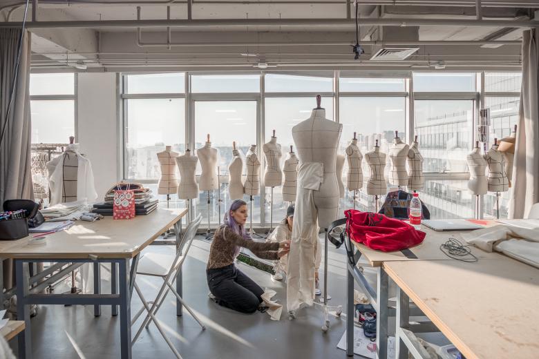 由于叠术建筑只负责概念设计,因此在设计过程的早期必须找到明智的成本节约策略,使设计独特而有力量,并允许对概念进行自由解释,以实现其构建的最终结果。这个计划是由学生之间如何互动和寻找灵感决定的。来自其他学校的家具和灯具,以及缝纫机和人体模型等所有设备都进行了再循环和再利用。