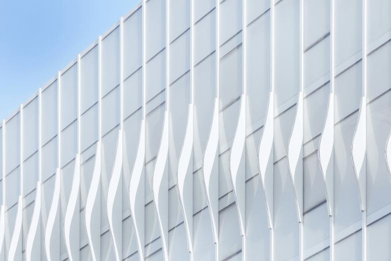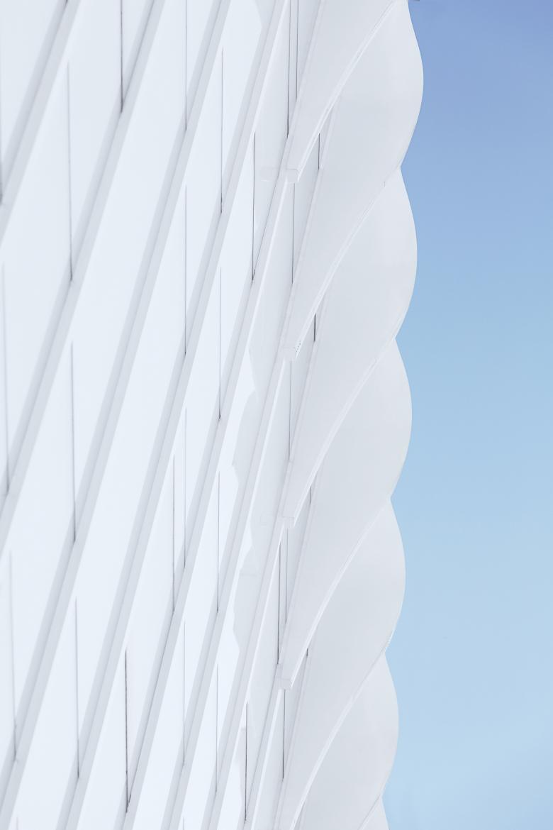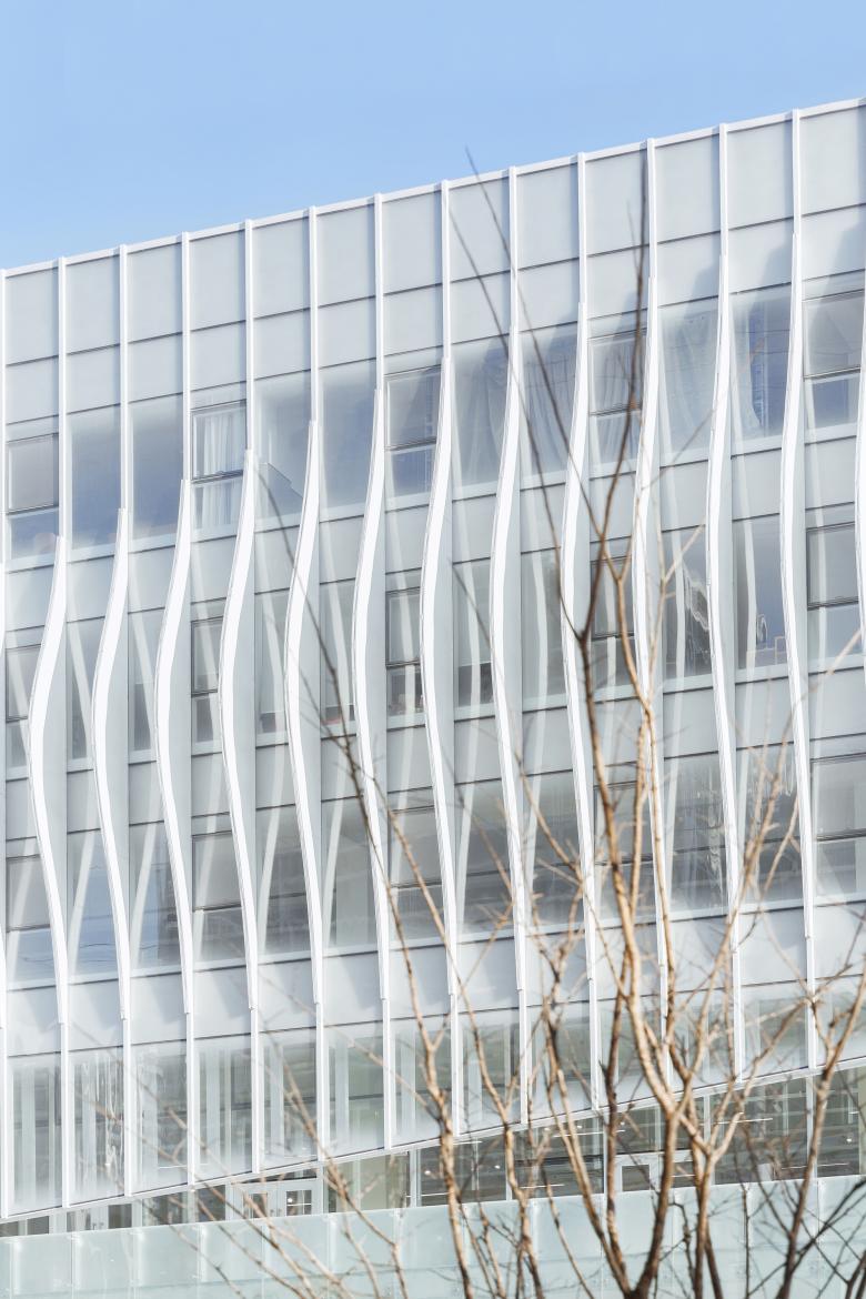 Curved aluminum plate has become the main feature of architecture, both emphasized the freedom of white linear form, and presented the potential rhythm by the curve. It seems simply to use the dynamic cutting method, but it shows the infinite possible rhythm of building skin.