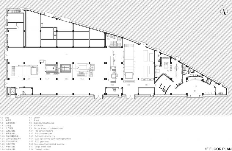 BSH focuses on bedding products which are from high quality goose down. It finished from a series of production processes of raw materials - cleaning - processing - inspection - filling - labeling. The white linear structure language of building is inspired by the characteristics of "goose down".