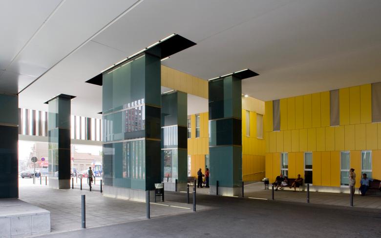 The Sabadell Hospital has been extended in a first phase with a new building perpendicular to the old ones, and a new volume with a staircase and elevators. The simplicity of the new building gives a new image to the whole hospital, and has permitted its construction without notable incident in the normal operation of the hospital. The public areas are mainly organized on the side of the park, providing nice views from all the waiting rooms and corridors. On the other side, the technical areas are connected with the ones from the existing building through the new volume containing the staircase and elevators. Multiple courtyards allow natural light enhanced with an ingenious system of mirrors. The lobby of the new building connects with the existing one, and together with a large porch creates a large area of access, related to the park and the Gran Via (the main street that gets to the hospital). Sustainability is present in many activities: - energy saving - recycling water - use of recycled materials - use of construction methods that decrease the execution timing - low-energy lightning The most apparent is the system that can adjust the solar radiation protection, formed by vertical slats. They move automatically according to the angle of the solar radiation, allowing the light to come in, but closing enough when the sunlight is bothering. Also the green roof has been an issue decided from the beginning, since the new building is smaller than the original one, and we wanted that views of the new building from a higher position were the continuation of the park. Also the green roof provides a good isolation and a minor visual impact for the user of the hospital.