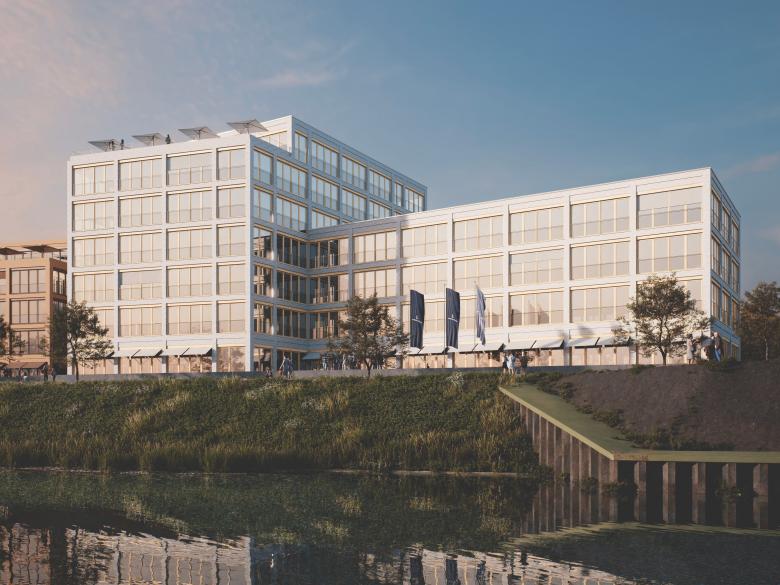 Am Schiersteiner Hafen – auf dem letzten Grundstück direkt am Wasser – planen wir auf drei Baufeldern das Büroensemble ›Harbourside‹ mit den Teilprojekten ›Golden Bay‹, ›White Sands‹ und ›Marina Blue‹.