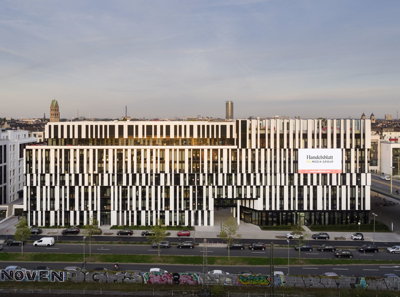 Das Projekt entstand auf dem Gelände des ehemaligen Derendorfer Güterbahnhofes in Düsseldorf, im neuen Stadtviertel ›Quartier Central‹. Auf dem 6.820 m² großen Grundstück bildet das siebengeschossige Bürogebäude ›La Tête‹ den Kopf und nördlichen Abschluss der Bebauung an der Toulouser Allee. Highlight ist ein großzügiger Skygarden mit Blick über Düsseldorf. Die spannungsreich zwischen Weiß und Schwarz rhythmisierende Fassade, erinnert an Barcodes, im offenen Innenhof setzen schwarze Erker und eine frei angestellte Treppe markante Blickpunkte. Hier wurde ein informeller Aufenthaltsort zum Dialog geschaffen.
