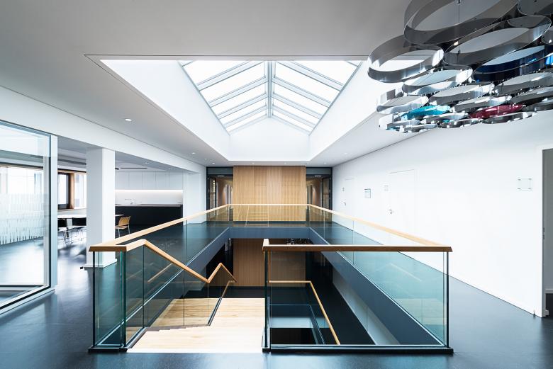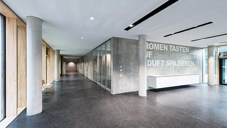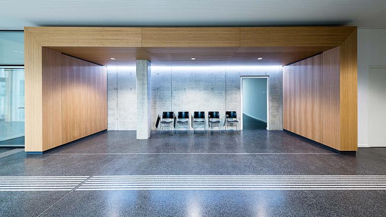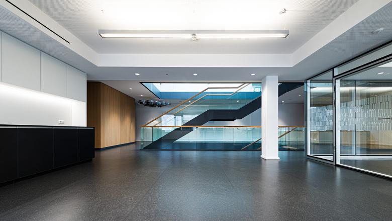 Unser Büro wurde 2015 beauftragt, in Erlangen den Neubau eines Verwaltungs- und Werkstattgebäudes für das LGL mit den Funktionen Verwaltung, Schulung und Werkstätten im Passivhausstandard als Ersatz für einen maroden Altbau zu planen. Der U-förmige Neubau bildet einen neuen repräsentativen Auftakt der Liegenschaft und nimmt die vorhandene pavillonartige Struktur der Laborgebäude auf. Der umgebende Grünraum wird sensibel aufgefangen und der naturnah gestaltete Freiraum verschränkt sich mit dem durchgestalteten Innenhof. Das Erdgeschoss ist in einen externen öffentlichen Bereich für Seminarbesucher und einen internen Bereich für Mitarbeiter aufgeteilt. Über ein Foyer werden die einzelnen Büroebenen erschlossen.