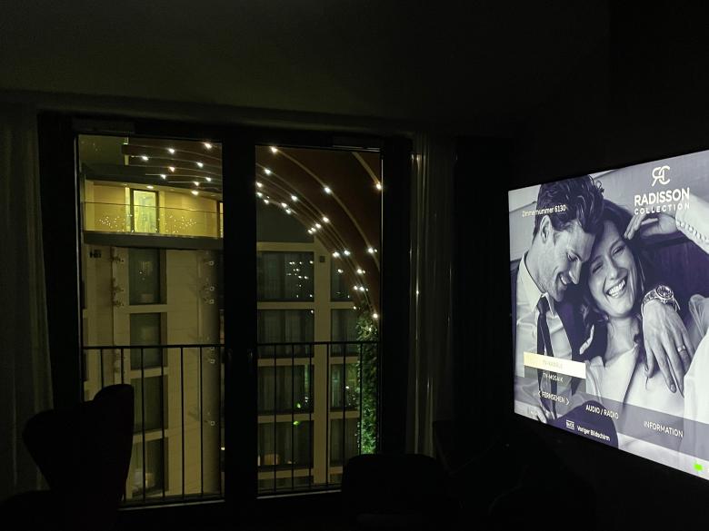 Alle Lichtkomponenten sind DMX-gesteuert und ermöglichen dynamische, farbige Lichtszenen für eine lebendige Innenhofatmosphäre.