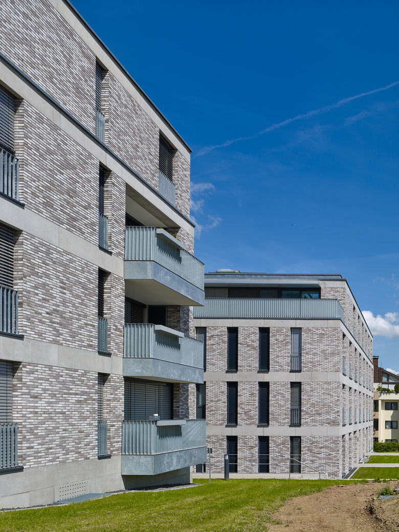 In prominenter Wohnlage Pforzheims sind die beiden Mehrfamilienhäuser angrenzend an vier Stadtvillen errichtet. Die orthogonal zueinander gesetzten Gebäude bilden ein Entree zur Postwiesenstraße. Über die städtebauliche Öffnung gelingt die Verflechtung mit den angrenzenden Punkthäusern. In einem heterogenen städtebaulichen Umfeld bilden die beiden puristischen Gebäude mit ihrer Gestaltungs- und Materialkonsequenz einen Ruhepol. Die Grundrisstypologie folgt den restriktiven Vorgaben der Wohnbaugesellschaften, gleichwohl definieren sie mit französischen Fenstern, einer größeren Raumhöhe und einer Erschließung mittels Diele einen höheren Wohnstandard. Das Material und seine Fügung sind von guter handwerklicher Qualität, das darüber hinaus dem Aspekt der Nachhaltigkeit Rechnung trägt.