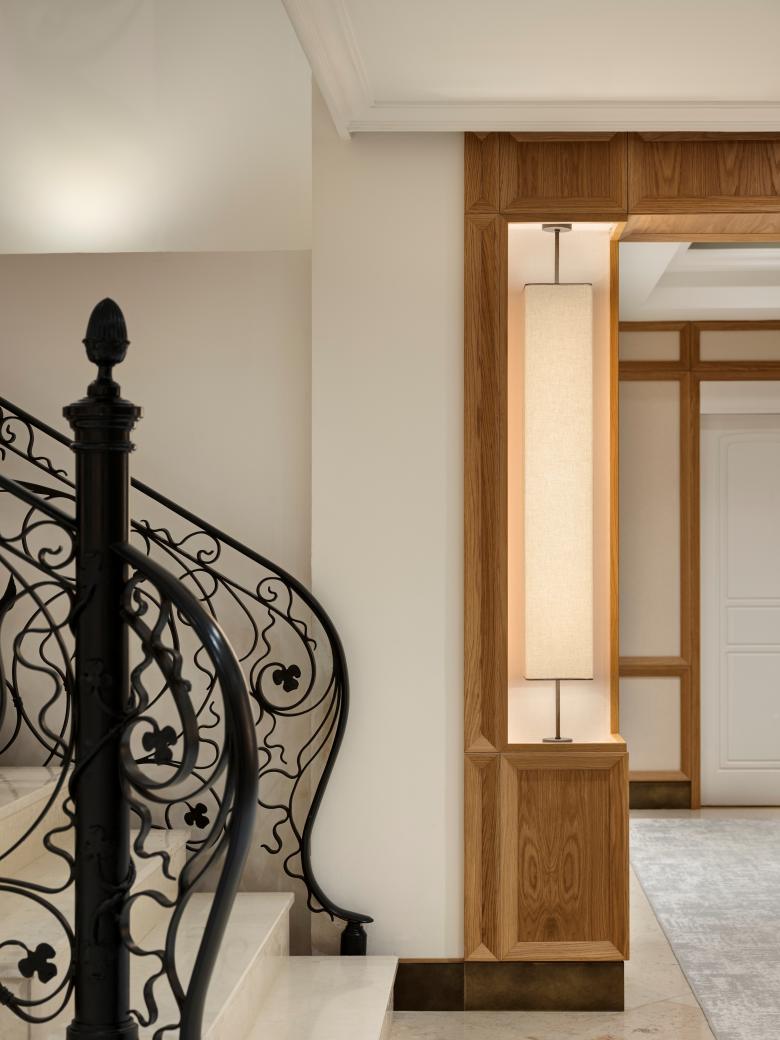 Ascending to the guestroom floors, corridors and shared public areas are designed with a language of calm, understated elegance. Wood-and-fabric boiserie is used to subtly articulate the lift lobbies, providing continuity with the public spaces below while reinforcing a refined and intimate atmosphere.