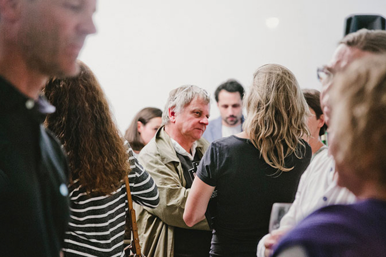 Für die Filmpremiere in der Architektur Galerie Berlin wurde anstatt einer musealen Präsentation ein Pop Up Kino errichtet. Die beiden synchron geschalteten Vorführsäle erlaubten ein echtes Kinoerlebnis, bei dem alle Aufmerksamkeit auf den Film gerichtet war. Das Foyer dazwischen wurde mit zwei Arbeiten von Piet Hein van Eek bestückt. Der holländische Möbeldesigner arrangiert scheinbar wertloses Material zu kunstvollen Gebrauchsobjekten. Lampe und Tresen wurden eigens für diese Ausstellung gefertigt und sind ebenso «serielle Unikate» wie das professionell geschnittene Rohmaterial in unserem partizipativen Filmprojekt.