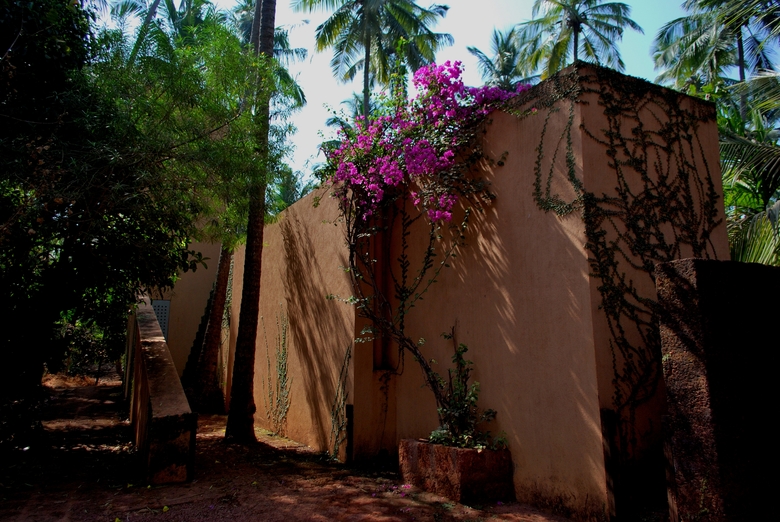 The intentions of re-placing lost ground and achieving forthrightness in construct for this single storey building called for a configuration of flat slabs spanning between load-bearing laterite masonry walls. Corresponding to the plot geometry, the building is configured in an ‘L’. The intensity of references from the Portuguese building forms – great churches with their bell-towers and buttresses, imposing forts and their bastions, massive houses with large volumes and big windows – offered the opportunity of adapting institutional architectonics reinterpreted/redefined to a domestic scale. The language which thus evolved is neither welcoming nor intimidating; instead, it merely frames spaces. The type – each arm of the ‘L’ – is a generous living bay open on both ends and flanked on one side by servant spaces. The few formal indulgences in a rather dormant built-form have to do with the obtuse edges of the ‘L’. While one edge forms the entrance passage to the house, the other is the right of way for the visitors moving to and from the beach. The entrance passage is flanked by the building on one side and by a compound wall on the other, which rises as one proceeds up the passage and doubles up as a bracing to the OHWT tower. While the bracing on the left hits a tower as the passage culminates at the vertex, the terrace line acting as the edifice on the right climbs down a flight of steps to reveal the arrival court – the prelude to the experience, located at the node anchoring the two arms of the ‘L’. It’s precisely between this zone that the Mobius nature of house is born, the birth of delusion between outside-inside…the illusion of threshold between landscape and the house comes alive. The edifice towards the right of way is an undulating surface, expressing a release analogous to the recoil of a stretched piece of elastic when snapped. Subsequently, the structure is un-self-conscious yet present; a presence which may appear alien at the initial glance. However, space is a greater concern here than form, which, perhaps when the ivy shrouds the edifice, one may see better.
