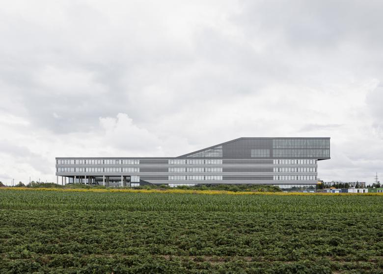 Das Gebäude vermittelt durch seine die Außenkanten des Grundstücks besetzende Kubatur Kraft und Solidität. Gleichzeitig wirkt das mächtige Volumen durch die horizontalen Lamellen der Fassade leicht und luftig. Durch die Loslösung vom Boden öffnet es seinen Innenhof zum Quartier. Der Innenhof wird zum Quartiersplatz, zum Ort für Kollaboration, und vernetzt das Gebäude mit dem Stadtgefüge. Weitere Öffnungen ermöglichen die Durchwegung und fördern die Interaktion mit anderen Institutionen des neu entstehenden Quartiers.