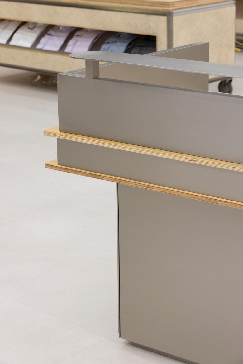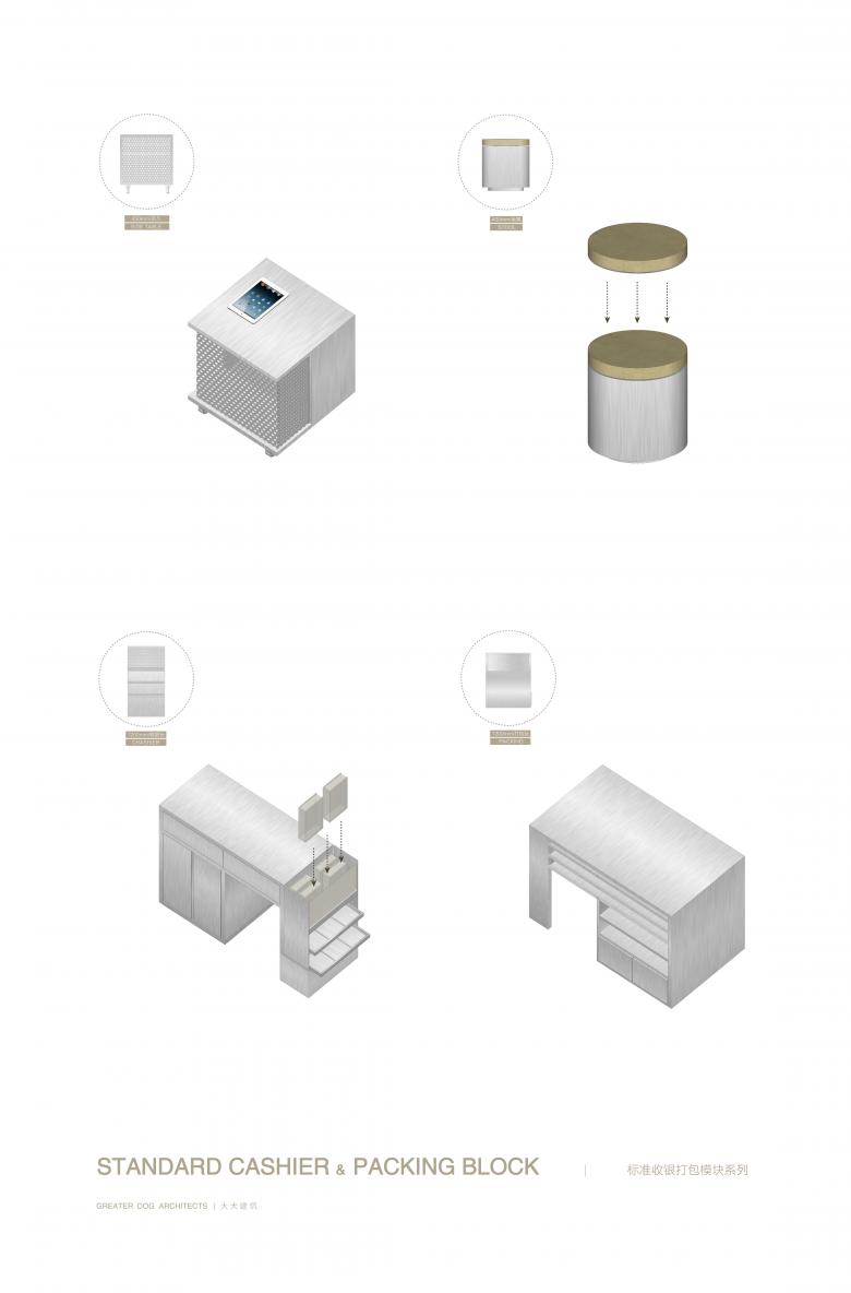 As a derivative series of standard wardrobes, the branded display wardrobe and uni-form display wardrobe have added 30mm X 30mm L-shaped steel based on standard components and materials, forming a slender corner, and the top structure facilitates the installation of light boxes. Furthermore, the Greater Dog team continues to explore the use of small parts that can be combined, such as T-shaped slider nuts, ring screws, and other parts, which add multiple functions to the display wardrobe.