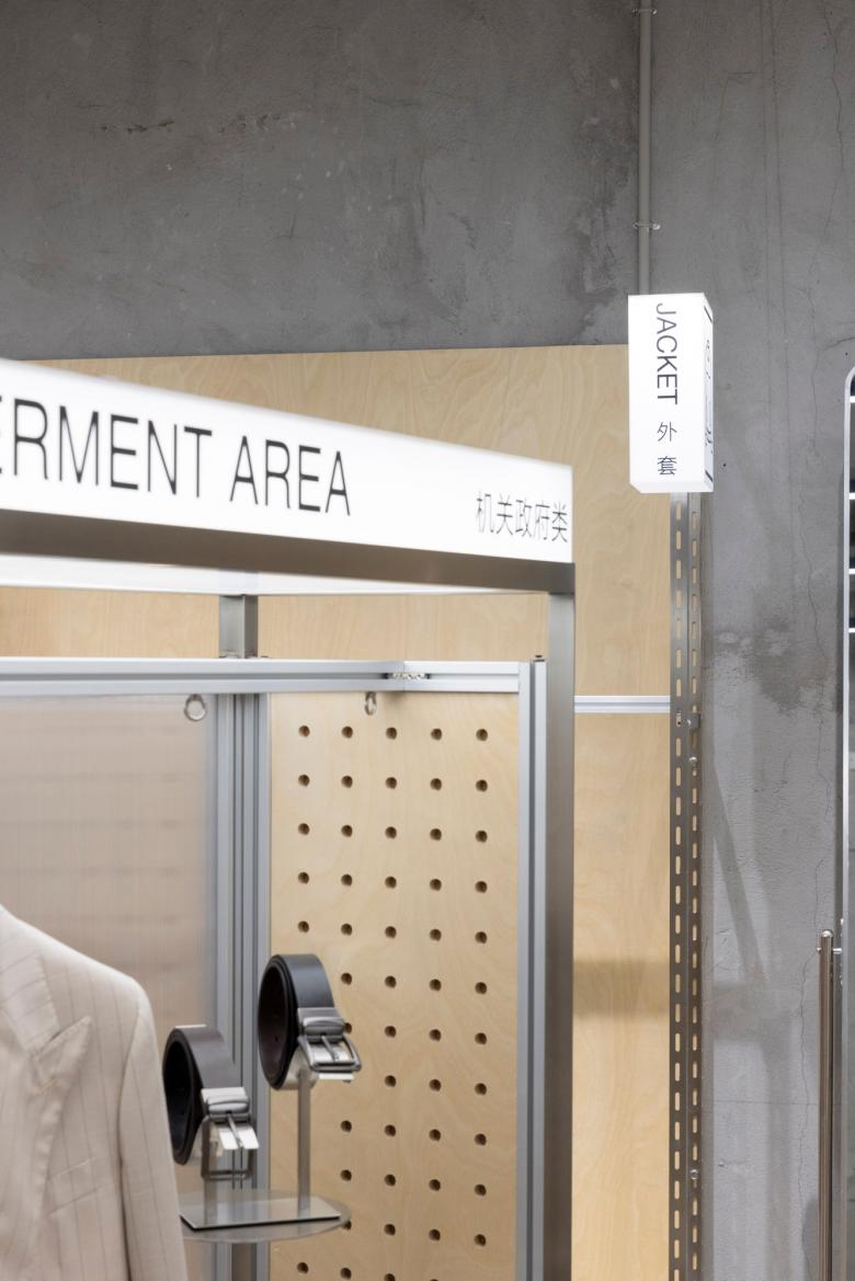 The uniform suits are placed in six wardrobes in a combined and matched form, visually presenting the suit dressing and craft details of different professions; Meanwhile, the signage highlights its importance in the corresponding category display. Designers use light boxes and graphics, combined with wardrobe and wall prop display systems, to guide customers to find what they need more conveniently, achieving more efficient conversion of item sales.