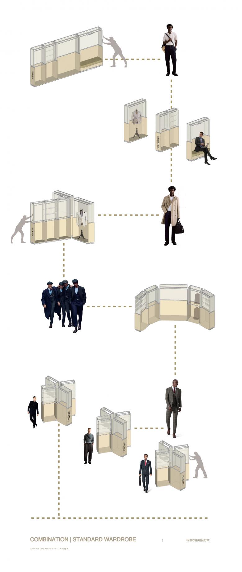 Starting with the 'Wardrobe Island' concept, the designer aims to create a recyclable wardrobe and construct an editable display system. Meanwhile, the wardrobe can be flexibly combined according to space requirements to improve space utilization. And by disassembling, packaging, and reassembling, moving to other stores for reuse, the potential for recycling can be reached.