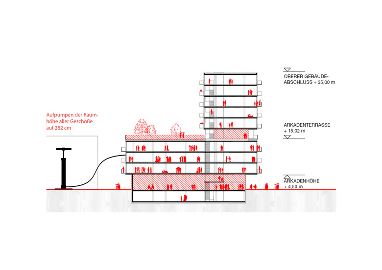 Ein lässiger Typ für eine lässige Gegend – Für den letzten Teilbereich des Sonnwendviertel am neuen Wiener Hauptbahnhof wurde der Masterplan überarbeitet und eine kleinteiligere Struktur entwickelt (HAU 1, Geographie statt Bebauung). Um das neue Quartier programmatisch aufzuladen, wurden an prägnanten Lagen sogenannte ‚Quartiershäuser’ im Rahmen eines Bieterverfahrens ausgeschrieben, für das Bauträger und PlanerInnen zusammen ein Konzept vorstellen mussten. Für das aktive Erdgeschoß mit verpflichtend niedrigen Mieten wurden konkreten NutzerInnen abgefragt. Das Quartiershaus als solches soll eine nutzungsoffene, robuste Struktur für ein vielfältiges und veränderbares Nutzungsspektrum bieten, das über das reine Wohnen hinausgeht.
