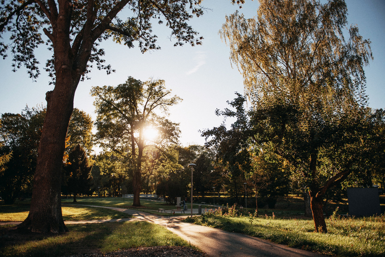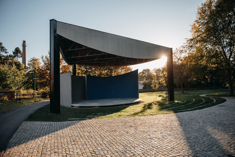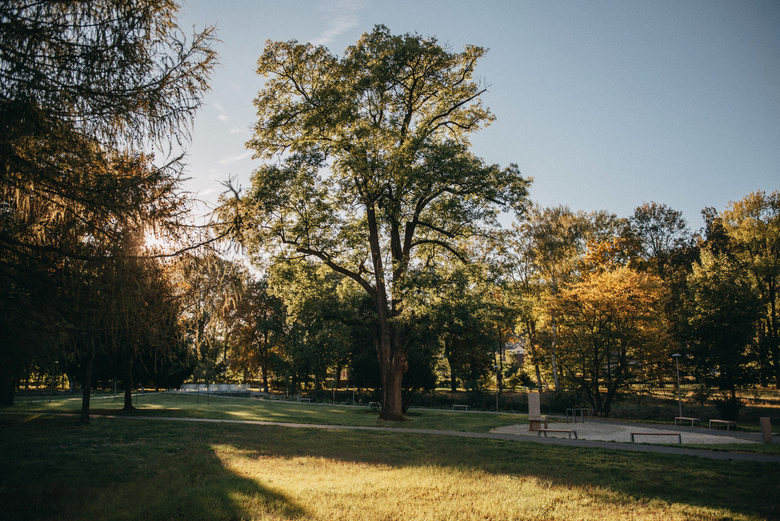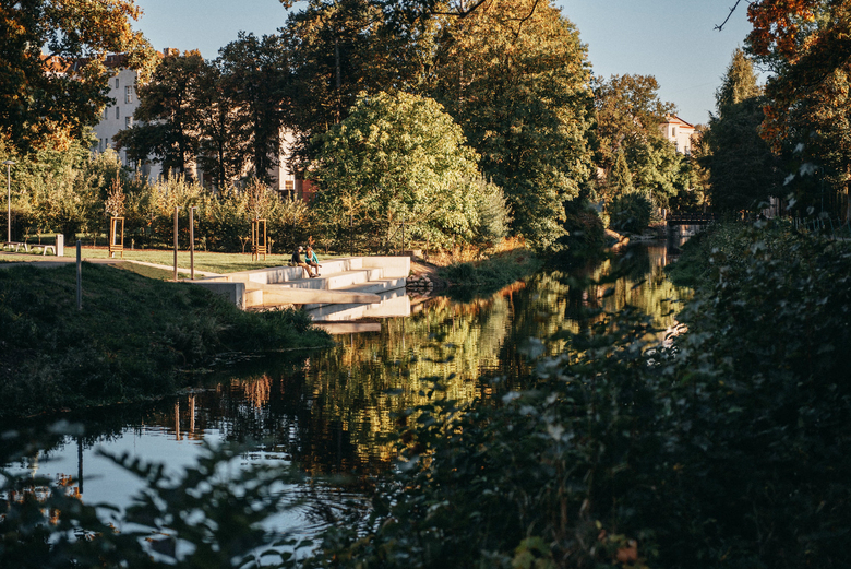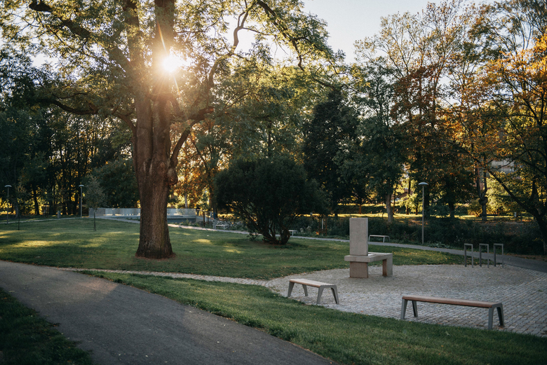 In addition to building interventions in the park's structure, greenery was restored. The original greenery of the park, consisting only of lawn and tall trees, was supplemented by another layer of flowering shrubs and beds of mixed perennial planting. Growing trees are supplemented by new ones with the vision of longer-term growth of trees so that they can replace the current fully grown trees. The plant material was chosen according to the local species representation of the surrounding landscape.