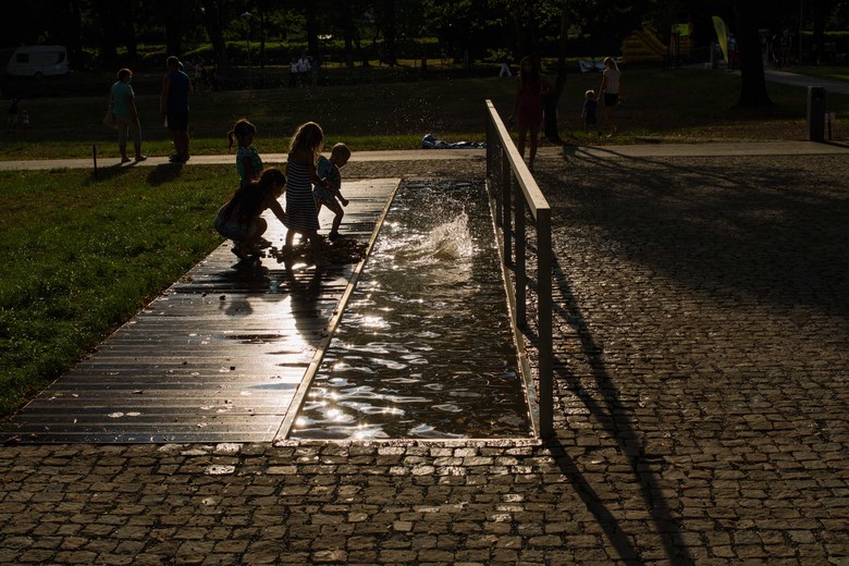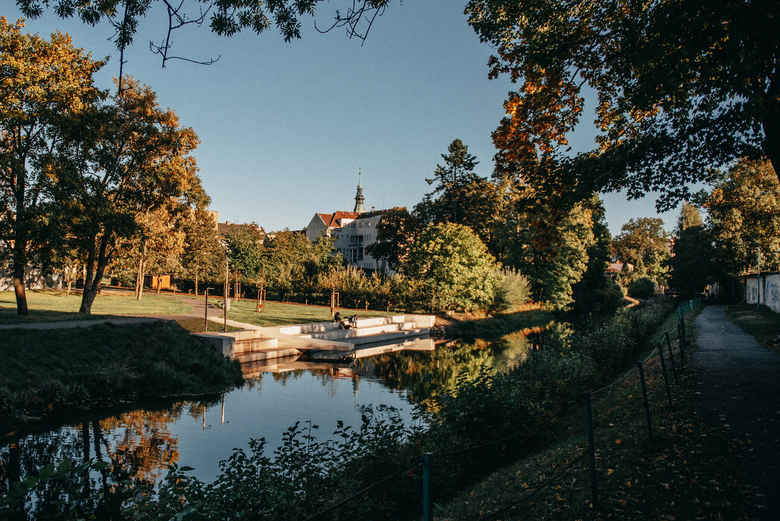 The chosen concept allows for the optical and spatial linking of the park with the river, cleaning the ruins from old buildings and re-tracing the park paths better suited to its users. The basic skeleton of the park consists of walking paths - a circular promenade intersected by a cross of the main passageways dividing the park into individual walking grass sectors with various functional uses / recreation, culture, representation, activities /. The main route through the park connects the town centre with the close by neighbourhoods of Zbečník and Velký Dřevíč. It passes along the avenue of the linden trees and directly connects to the footbridge over the Metuje River. Resting places with benches are placed around the paths.