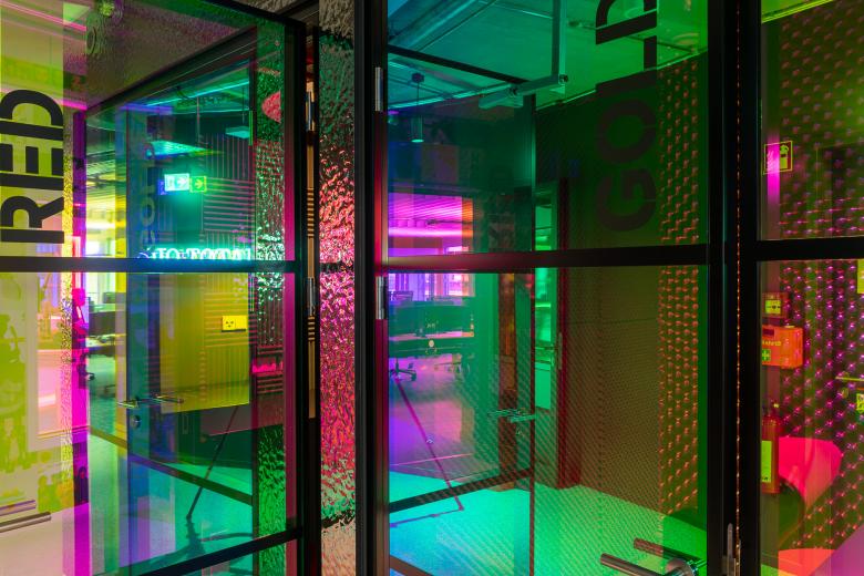 Durch die individuelle Beleuchtung der vielen Themenwelten und den übergeordneten, verbindenden Elementen entsteht ein stimmiges Gesamtkonzept, welches dem modernsten Audio-Produktionszent- rum Europas mehr als gerecht wird. Hier können die Kunden und Mitarbeiter sich kreativ entfalten und Audioinhalte der Zukunft kreieren.