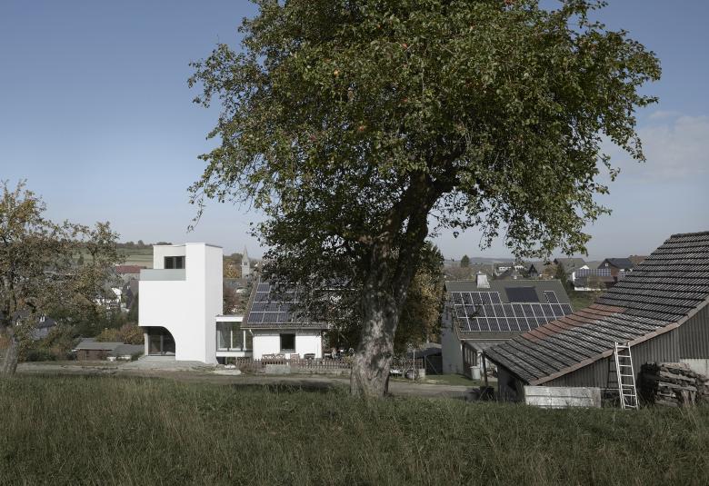 Der Um- und Weiterbau vorhandener Gebäude über Generationen ist ein wichtiges Thema im ländlichen Raum. Eine zeitgemäße Interpretation dieses Themas ist das Turmhaus im nordhessischen Bromskirchen. Eine junge Familie, der die Wohnung im elterlichen Haus zu eng wurde, entschied sich für eine Form des Neubaus, die sowohl den Wunsch nach Eigenständigkeit als auch das Bedürfnis nach solidarischer Nähe zur Elterngeneration erfüllt: Ein Solitär, der sich markant vom 60er-Jahre-Haus der Eltern abhebt, aber über eine Brücke mit dem Altbau verbunden ist.
