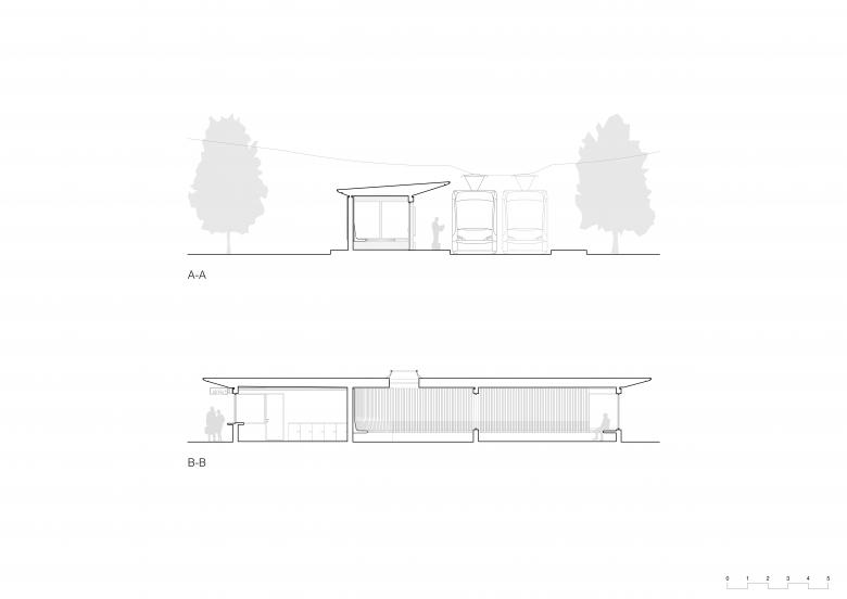 Die Sitzlandschaft entwickelt sich aus dem Kioskbereich und führt entlang der Aussenkanten in den überdachten Aussenraum. Überdachte und teilweise geschlossene Wartebereiche bieten Schutz vor Witterungseinflüssen, während Offenheit und Transparenz erhalten bleiben. Die Sanierung erfüllt die Anforderungen an Barrierefreiheit gemäss SIA 500, verbessert Sicherheit und Orientierung und integriert eine energieeffiziente LED-Beleuchtung für die Nutzung in den Abendstunden. Das Projekt versteht sich als nachhaltige Sanierung sowie als langfristiger Beitrag zur Aufwertung der ÖV-Infrastruktur und des öffentlichen Raums in Bern.