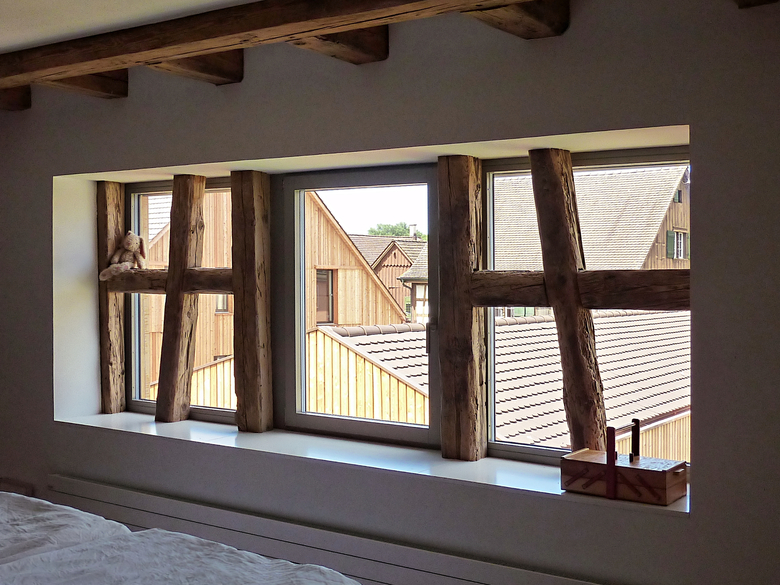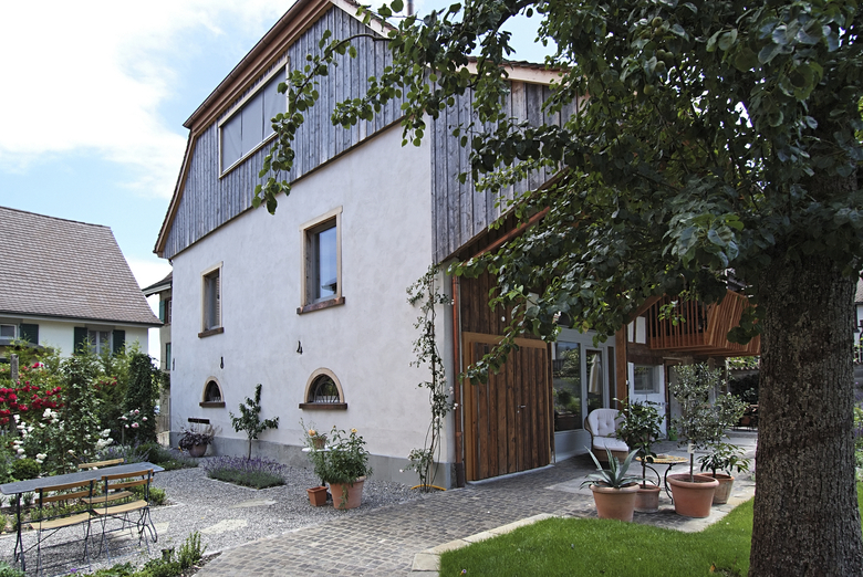Das Areal im Herzen von Gottlieben mit dem ehemaligen Bauernbetrieb war beinahe 800 Jahre im Besitz der Grundeigentümerfamilie. Vor rund 30 Jahren wurde der Betrieb eingestellt und ausgesiedelt. Im Auftrag der Besitzer wurde nach einer für den historischen Ort verträglichen Umnutzung des Areals gesucht. Mit dem Projekt wurde neuer Wohnraum für Familien geschaffen. Dabei wird der dörflichen Struktur, insbesondere dem markanten Hofraum Rechnung getragen. Die Stallscheune an der Aalgasse wird durch ein Neubauvolumen mit zwei Wohnhäusern und einer Tenne ersetzt. Die an die Drachenburg grenzende alte Remise wurde in der Struktur erhalten und zu einem Wohnhaus für zwei Familien umgenutzt. Ein zum Seerhein hin, den Hofraum definierender Abschluss bildet ein neuer Scheunenbau, welcher als Park- und Lagergebäude Verwendung findet. Durch die Massnahmen konnte der ursprüngliche Gestaltungsplan mit zu verdichteten Bereichen sensibler und mit mehr Freiraum realisiert werden, welcher auch Bezug und Massstab der Nachbarschaft respektvoll aufnimmt.