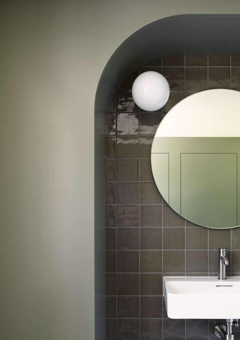 Das Raumkonzept balanciert fokussiertes Arbeiten und Kollaboration. Klassische Arbeitsplätze, offene Meeting-Zonen sowie Servicebereiche wie Teeküche und Aufenthaltsraum schaffen vielfältige Nutzungsmöglichkeiten. Das Farbkonzept interpretiert den historischen Kontext neu und knüpft gestalterisch an die Ökonomiebauten des Solitudeparks an. Die gesamte technische Infrastruktur wurde erneuert und unter anspruchsvollen Rahmenbedingungen an aktuelle Anforderungen von Brandschutz und Erdbebensicherheit angepasst. Besonderes Augenmerk galt der energetischen Ertüchtigung: Neue Fenster und Türen, verbesserte Dämmungen sowie eine Erdsonden-Wärmepumpenanlage ermöglichen einen nachhaltigen Betrieb. Der sommerliche und winterliche Wärmeschutz wurde durch eine nutzungsorientierte Beschattung weiter optimiert. Wo möglich, fanden historische Elemente wie Fensterbänke, Dachziegel oder Fensterläden erneut Verwendung.