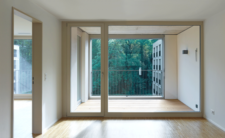 Der klar geschnittene achtgeschossige Baukörper mit städtischer Fassade und Arkade reiht sich ein in den urbanen Kontext des neu geplanten Stadtteils auf dem ehemaligen Industrieareal der Firma Sihlpapier. Dieser Stadtteil basiert auf einem Gestaltungsplan von Diener & Diener Architekten. Im Kontrast zur Strassenfront steht die feine volumetrische Differenzierung der Fassade im Hof und des Dachgeschosses. Sie schafft eine Verzahnung der hausöffentlichen Bereiche im Innenhof und auf dem Dach mit den Wohnungen und ihren privaten Aussenräumen. Auf Platzniveau sind öffentliche Nutzungen angeordnet. Ebenso befinden sich dort Hauseingänge sowie ein grosszügiger Aufgang zum höher liegenden Wohnhof. Dieser zentrale Begegnungsort wird ergänzt durch eine abwechslungsreich gestaltete Dachlandschaft, bestehend aus miteinander verbundenen Terrassen, die weitere Aufenthaltsräume bieten. Die Wohnungen sind dreispännig organisiert. Sie profitieren je nach Lage im Baukörper von unterschiedlichen Bezügen: über Eck angeordnete Wohnungen geniessen die besondere Lage im Stadtraum, während die zweiseitig orientierten Wohnungen mit «durchgestecktem» Wohn- und Esszimmer von der Ausrichtung zum Hof und zum öffentlichen Raum profitieren. Der leicht sandgestrahlte Betonsockel ist platzseitig als Arkade ausgebildet und nimmt das in Ostrichtung ansteigende Terrain auf. Darüber erhebt sich über sieben beziehungsweise sechs Geschosse eine Metallfassade mit raumhohen Fenstern. Glatte Blechpaneele gliedern die Fassade in der Höhe und überziehen das Gebäude zusammen mit den vertikalen, fein strukturierten Fassadenelementen, die den Baukörper rhythmisieren.