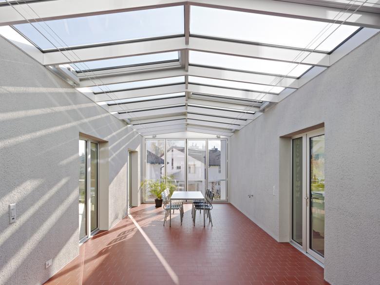 Das Projekt bietet sowohl individuelle Wohnflächen wie auch gemeinschaftliche Räume und Begegnungszonen. Die „Orangerie“, ein als Wintergarten ausgebildeter und verglaster Zwischenraum im Eingangsgeschoss fördert die Begegnung untereinander und ist ein zentraler Ort. Die insgesamt vier Wohnungen sind als Volumen quer übereinander gestapelt und als eigenständige Einheiten architektonisch ablesbar.