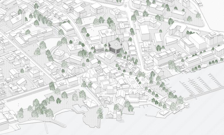 Axonometrie der Intervention im Dorfkern Stansstad