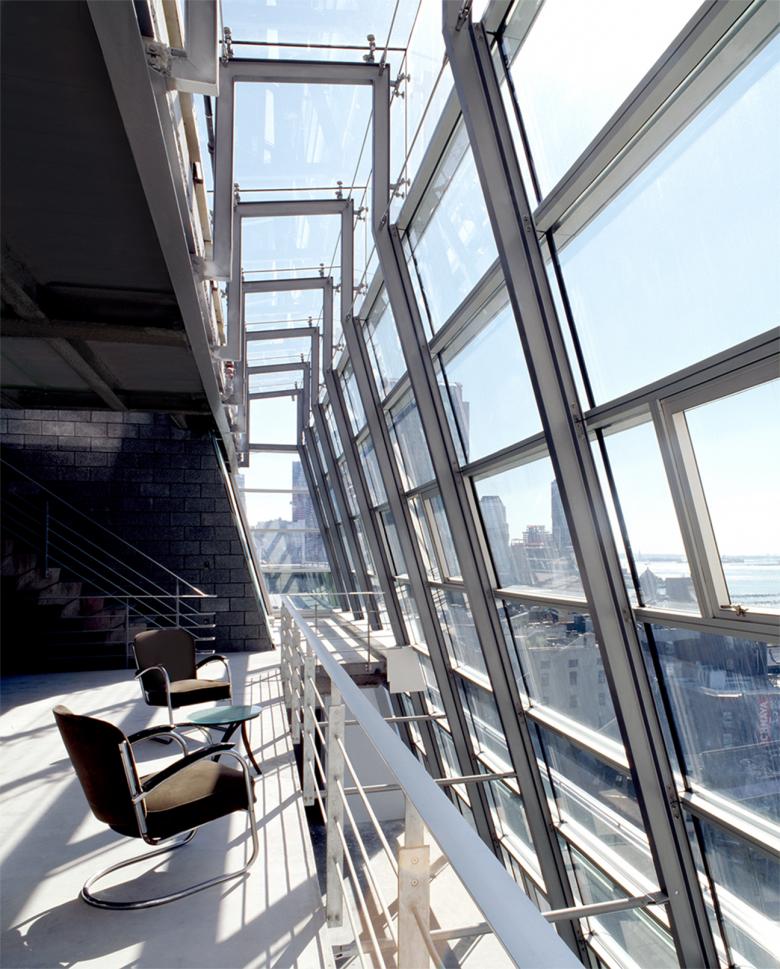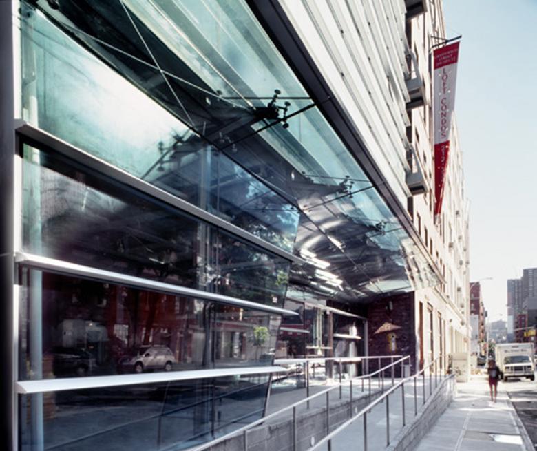 The integration of the renovated warehouse with its new folded steel and glass facade creates a mediation between past and present, resulting in a new icon for the neighborhood. The facade provides passive solar energy and commanding views over the Hudson River. The building introduces a lively mix of uses to the neighborhood, and 25 lofts with generous amenities.