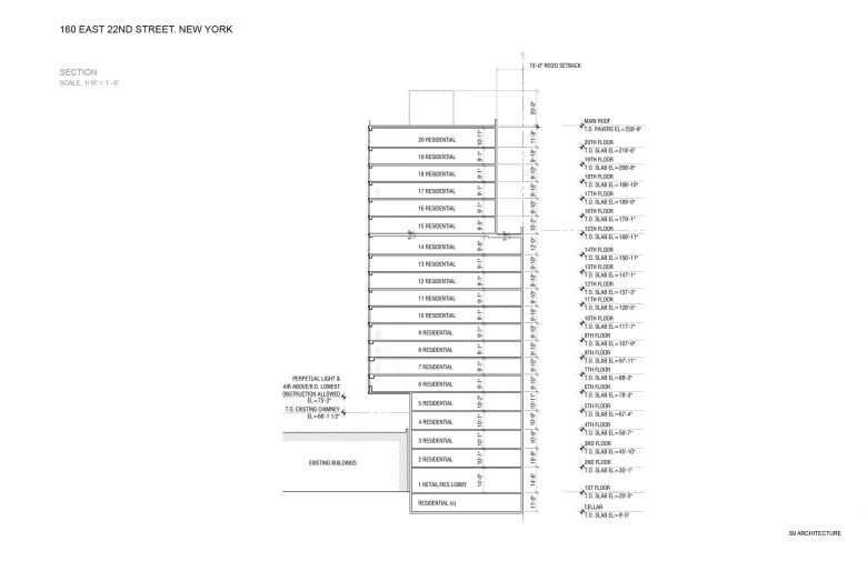 S9 Architecture, though a relatively young firm, is very busy, with numerous projects in design and under construction, most of them in and around New York City, where they are based. For this week's Building of the Week, S9 Architecture sent us some text and images of 160 East 22nd Street, a residential building in Manhattan's Gramercy Park neighborhood that stands out for its asymmetrical stacking and daring cantilever over its neighbor to the south.