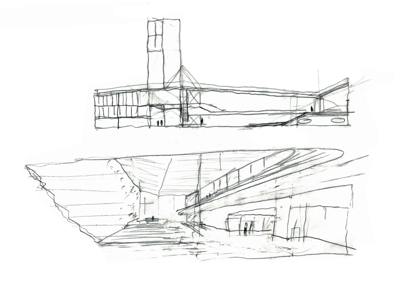 A further difficulty was the complex site condition. Underground subway infrastructure constrained the building to a section of the site along the main access road for the New Bund district. This gave the building the condition of an edge – between the linear park along the Huangpu River and the new urban development towards the New Bund.