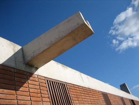 The resulting form is simple, austere, in reinforced concrete and brick, with windows and 'bars' made of Lapacho wood.