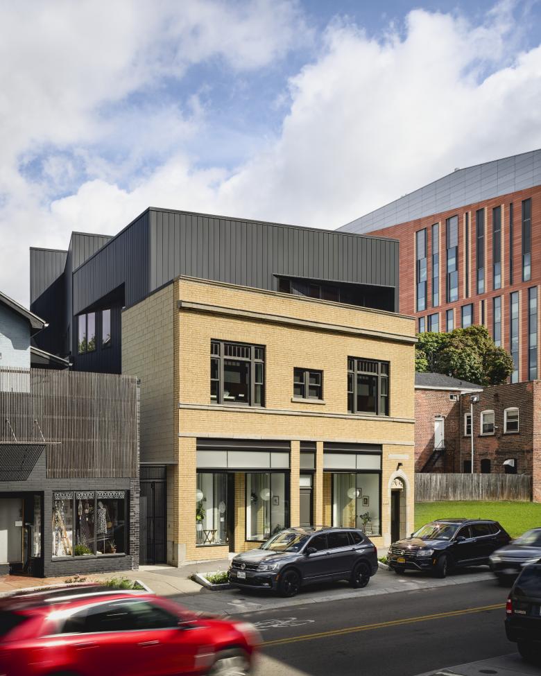 Spanning dozens of blocks north of Downtown Buffalo, New York, the Allentown Historic Preservation District has a large assemblage of buildings from the 19th and early 20th centuries. The Allen Apartments is a new three-story building behind a rebuilt historic facade from the 1920s. The architects at asap answered a few questions about the project, an eclectic addition to the neighborhood.