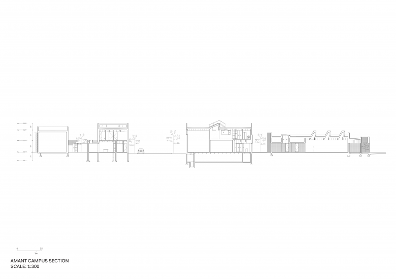 Central to Amant’s design is the idea of an urban oasis, a space where the pace of art-making can slow to allow experimentation and meaningful reflection. The campus converses with the site’s eclectic post-industrial neighborhood, just as the organization housed within fosters dialogue between artist, visitor, and community.