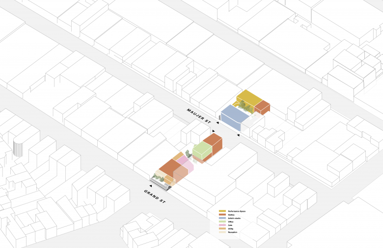 Amant is spread across three blocks of rapidly changing, industrial North Brooklyn. An innovative cultural incubator, the facility functions both privately and publicly, housing artist studios, galleries, offices, a performance space, and a cafe.